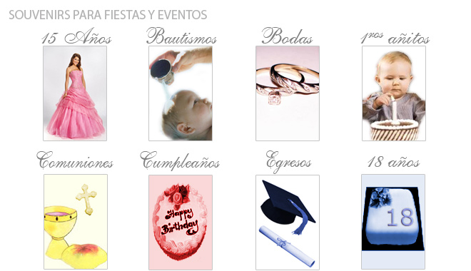SOUVENIRS O SOUVENIRES DE REGALO PARA FIESTAS Y EVENTOS EN CÓRDOBA Los souvenirs o souvenires originales para fiestas y eventos en Córdoba son un regalo del recuerdo de un momento esperado y puntual en nuestras vidas. Como principales clasificaciones de los souvenirs o souvenires originales para fiestas y eventos en Córdoba podemos ver: - Fotos y souvenirs o souvenires de o para fiestas o ceremonias de cumpleaños de 15 quince años originales en Córdoba: los más originales souvenirs para fiestas de chicas de 15 años con fotos y en otros materiales. - Souvenirs o souvenires de o para Bautismos o Bautizos en Córdoba: los souvenirs más utilizados y usuales para bautismos de varones y nenas con fotos y de telas en Córdoba. - Cotillones, souvenirs o souvenires de o para fiestas de casamientos y bodas utilizados como cotillón en Córdoba: souvenirs usados en los cotillones de casamientos, originales, con fotos, de telas y otros materiales. - Obsequios, souvenirs o souvenires infantiles de o para fiestas de nacimientos y cumpleaños de 1 un año, 2 dos años, 3 tres años, 4 cuatro años, 5 cinco años, 6 seis años y 7 siete años en Córdoba: recordatorios, presentes, souvenirs, souvenires para cumples y nacimientos de varones y nenas con fotos y muchas opciones más. - Souvenirs o souvenires de o para celebraciones de comuniones en Córdoba: regalos, recuerdos, souvenirs para comuniones de varones y nenas originales, con fotos y en diferentes tipos de materiales. - Presentes, souvenirs o souvenires de o para cumpleaños de cualquiera de las edades como ser 20 veinte años, 30 treinta años, 40 cuarenta años, 50 cincuenta años, 60 sesenta años, 70 setenta años, 80 ochenta años, 90 noventa años, 100 cien años en Córdoba: obsequios, recordatorios, souvenirs para cumpleaños importantes de hombres y mujeres, adultos, ancianos con fotos y en telas y muchas más opciones de regalos para los invitados del cumpleaños. - Recuerdos, souvenirs o souvenires para fiestas de egresados, colaciones, recibidas y egresos de cursos o universidades en Córdoba: souvenirs como las clásicas remeras de egresados, recuerdos con fotos, recuerdos de tela y demás productos para regalar. - Originales souvenirs o souvenires de o para fiestas y ceremonias de cumpleaños de 18 dieciocho años en Córdoba: recuerdos, suvenirs para amigos y amigas en cumpleaños memorables como el del varón de 18 años.